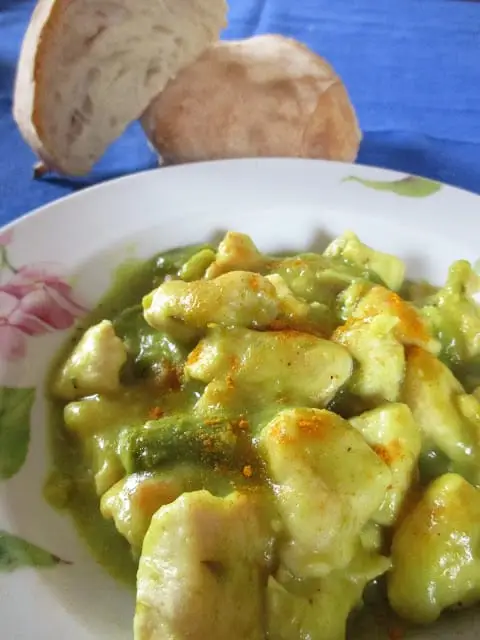 - At this point put the lid to the pot (during the browning do not use the lid because it excessively holds the steam and the chicken instead of browning will lend itself) and continue cooking over a very low heat by gradually adding a little broth if the asparagus cream is too dry.