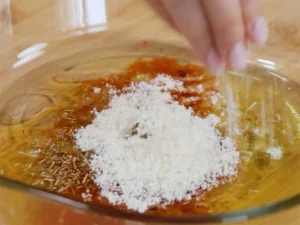 1. In a bowl, combine the olive oil, honey, lemon juice, minced garlic, rosemary and thyme, sweet paprika, grated cheese, and salt.