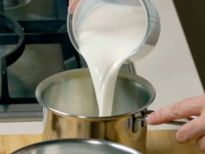 - We prepare caramel by putting 100 grams of sugar in a saucepan and in another saucepan we heat the milk. We bring both pots on the fire, putting them close to better control them.