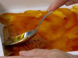 - As soon as the caramel was formed, let’s pour it into a square silicone mold (18×18 cm), trying to widen it to the bottom. Then let it rest so that it solidifies.