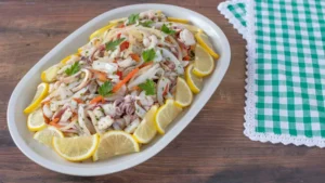 After preparing it, we put our seafood salad in the fridge and bring it to the table when it is cold. But not too much, otherwise the flavors will feel less.