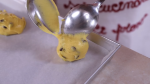- Mix until we get a smooth mixture without lumps.We use two spoons to give shape to the biscuits and place them directly in the baking tray, covered with parchment paper