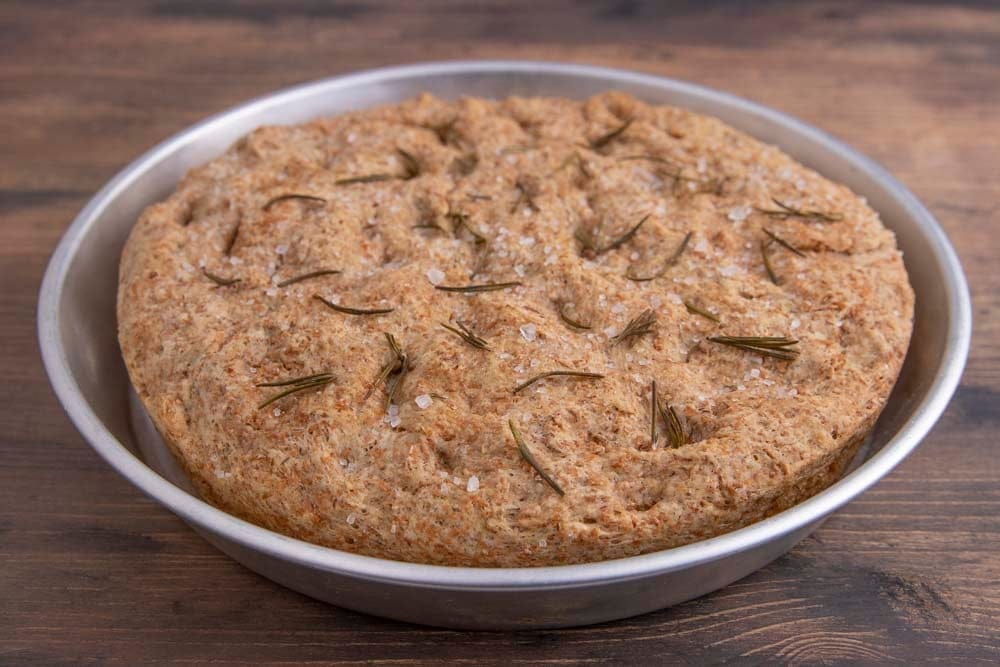 Tall and fluffy whole wheat focaccia